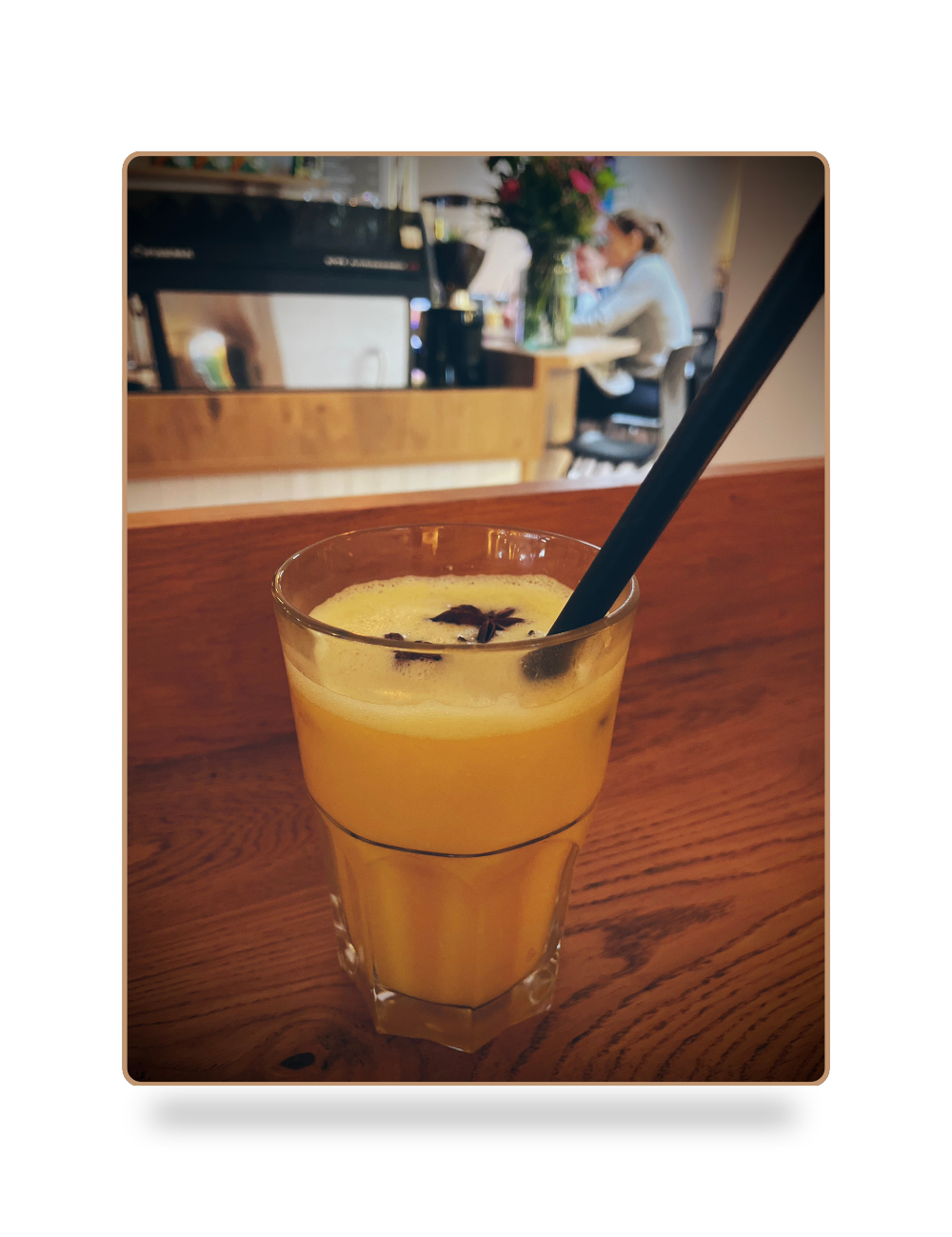 Ingrediënten: (warme) jus d’orange, gember en steranijs.